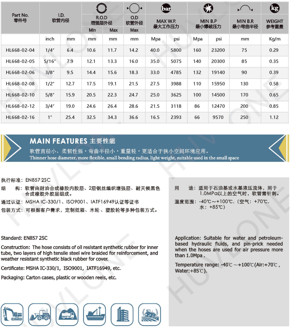 產品用途:適用于石油基或水基液壓流體,用于1.0MPa以上的空氣時,軟管需針刺。