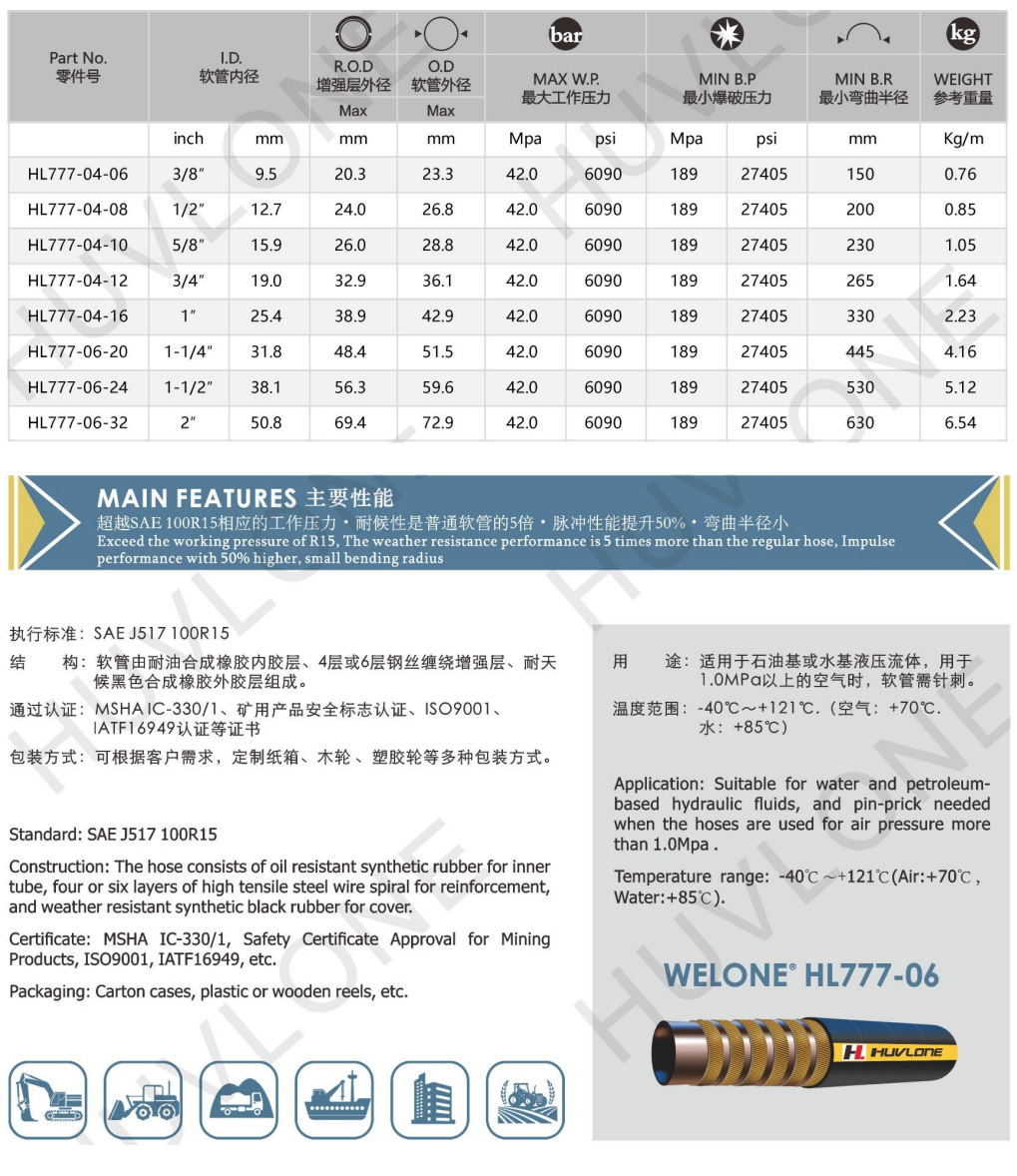 產品用途:適用于石油基或水基液壓流體,用于1.0MPa以上的空氣時,軟管需針刺。