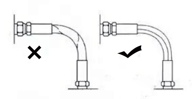 正確安裝膠管至關(guān)重要,如果膠管過(guò)長(zhǎng)不但影響外觀,而且增加成本。如果膠管太短,當(dāng)其受壓而伸展或收縮時(shí),沒(méi)有足夠的伸縮余地,會(huì)導(dǎo)致膠管被破壞。以下各圖顯示安裝膠管時(shí)應(yīng)注意的事項(xiàng),依此安裝可達(dá)最佳的工作效果并延長(zhǎng)膠管的壽命。