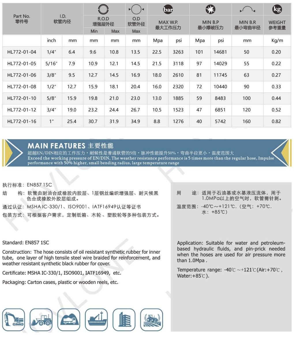 Meet/Exceed the standard of DIN EN857 1SC One sfeel wire braided rubber hydraulic hose