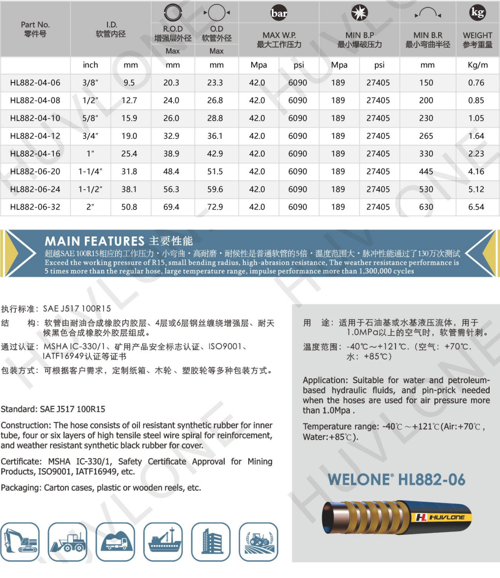 Meet/Exceed SAE J517 100R15 Four steel wires spiral rubber hydraulic hose