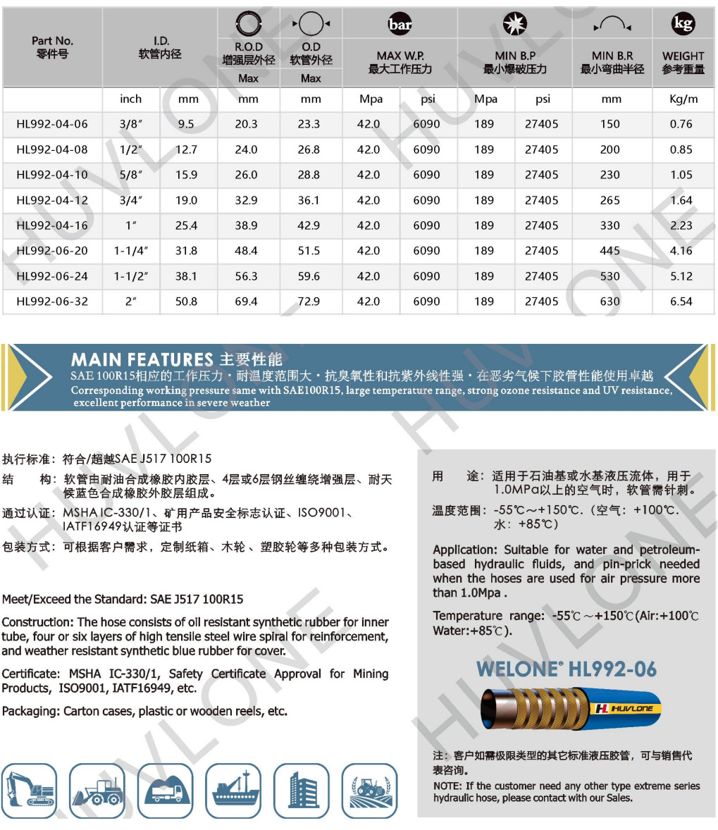Product Usage:Suitable for water and petroleum-based hydraulic fluids,and pin-prick needed when the hoses are used for air pressure more than 1.0Mpa.